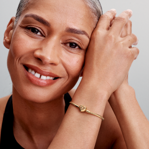 REF # : 599639C01 Bring celestial sparkle to your look with the Pandora Moments Asymmetric Star Clasp Snake Chain Bracelet. Hand-finished in sterling silver. the bracelet’s star-shaped clasp is covered by sparkling clear cubic zirconia pavé on both sides. It can be worn with up to 16-18 desired charms and clips. Wear it on its own…