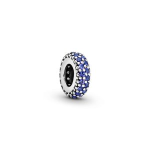 Item# 791972C01 Always shine bright with the Blue Sparkle Clip Charm. Hand-finished in sterling silver. this classic round design features a centred row of shimmering blue stones. Style with other sterling silver pieces on your go-to Pandora Moments bracelet to separate out your charms and add a subtle hint of colour. Material: Sterling Silver
