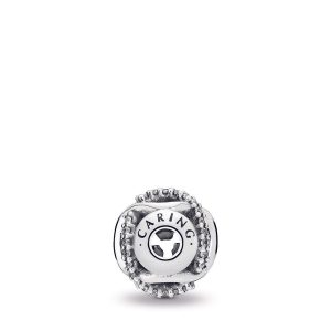 Item#796072CZ Gently curved rings in an interlocking pattern of stone-studded and polished sterling silver strands symbolise the many aspects of compassion. and its enduring connection to mankind. Create a meaningful bracelet and style this PANDORA ESSENCE COLLECTION charm with the corresponding Caring charms. Material: Sterling silver