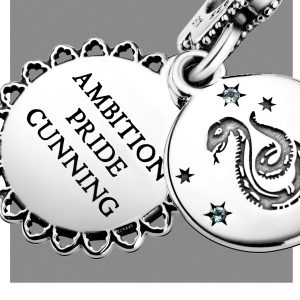 Item#798831c01 Pandora Moments Harry Potter. Ravenclaw dangle Metal: Sterling silver Stone: 1 micro and 2 star flush-set round brilliant-cut sea blue crystals Motif/Shape: The double dangle design features a front disc detailed with the Ravenclaw house logo surrounded by blue stars and a back disc encircled with cut-outs. The bail is shaped as the Hogwarts…