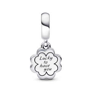 REF # :聽792245C01 A twist on a well-known symbol of luck. our Four-leaf Clover Friendship Double Dangle Charm shines with a message of love and appreciation. Crafted from sterling silver. it features cut-out hearts coming together to form a four-leaf clover on one dangle. The other dangle. also clover-shaped. is covered in powder pink enamel…