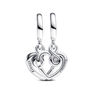 Item #791948CZ Wear or share this friendship charm to show that friends are forever 鈥?just like its engraving says. Cast from sterling silver. it’s shaped into two dangles: a heart and a stone-studded infinity symbol for extra sparkle to the personal piece. It’s made for our Pandora Moments charm bracelets. but looks equally cool as…