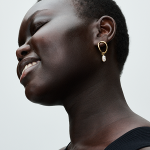 14k Gold-plated stud earrings with baroque white treated freshwater cultured pearl