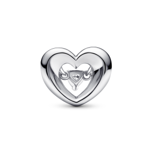 Collection: Pandora Moments Metal: sterling silver Stone: 1 half v-prong-set and half prong-set heart-shaped faceted clear cubic zirconia Motif: 3D open. domed and concave heart with floating stone. Special features: domed heart with cut-out centre with a floating heart-shaped stone dangling from two jump rings; the outline heart on front and back is concave creating…