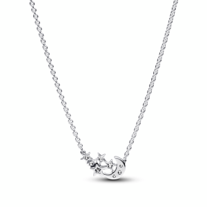 Stars and moon sterling silver collier with clear cubic zirconia