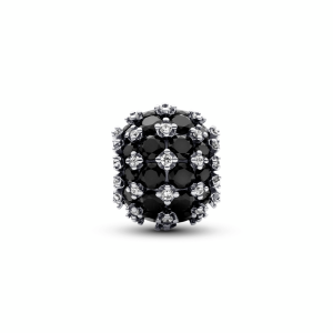 Sterling silver charm with black crystal and clear cubic zirconia