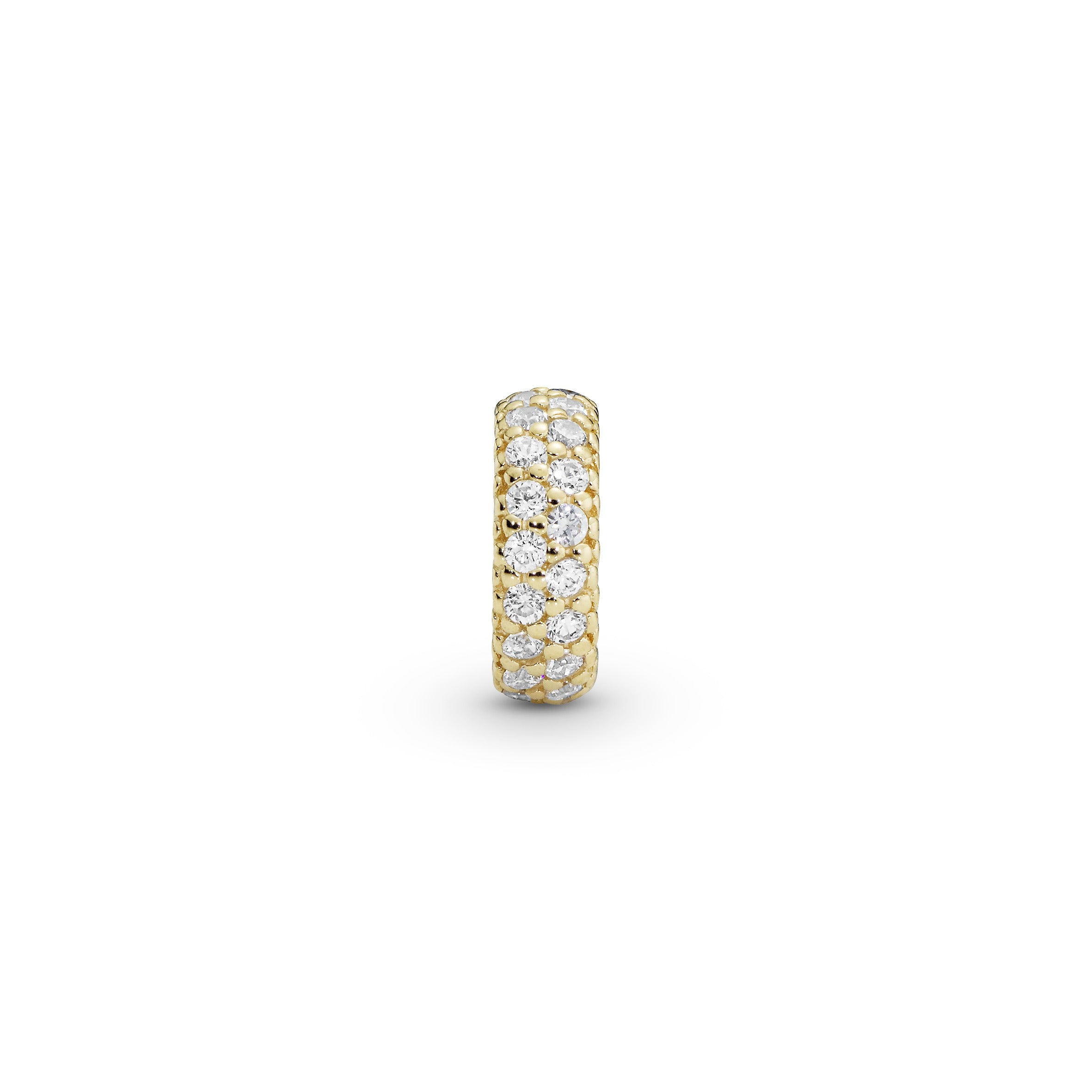 Our hand-finished Pandora spacer charm will add instant sparkle to a favourite bracelet. The timeless piece is cast in 14k gold that’s been polished to a shine and carefully pavé-set by hand with cubic zirconia. Thread it on a bracelet. string it on a necklace as a pendant or attach it to a hoop earring to create a look that’s uniquely you.