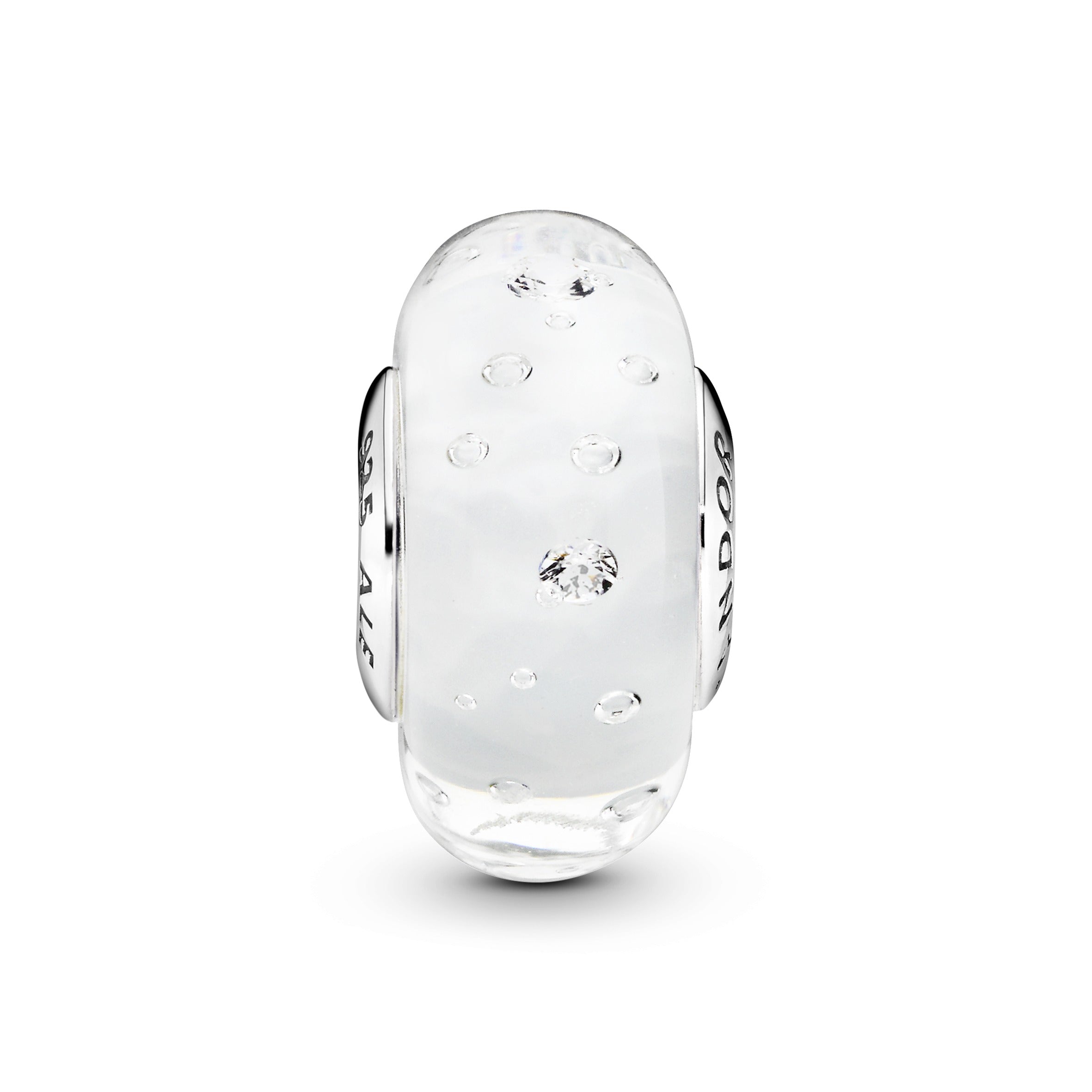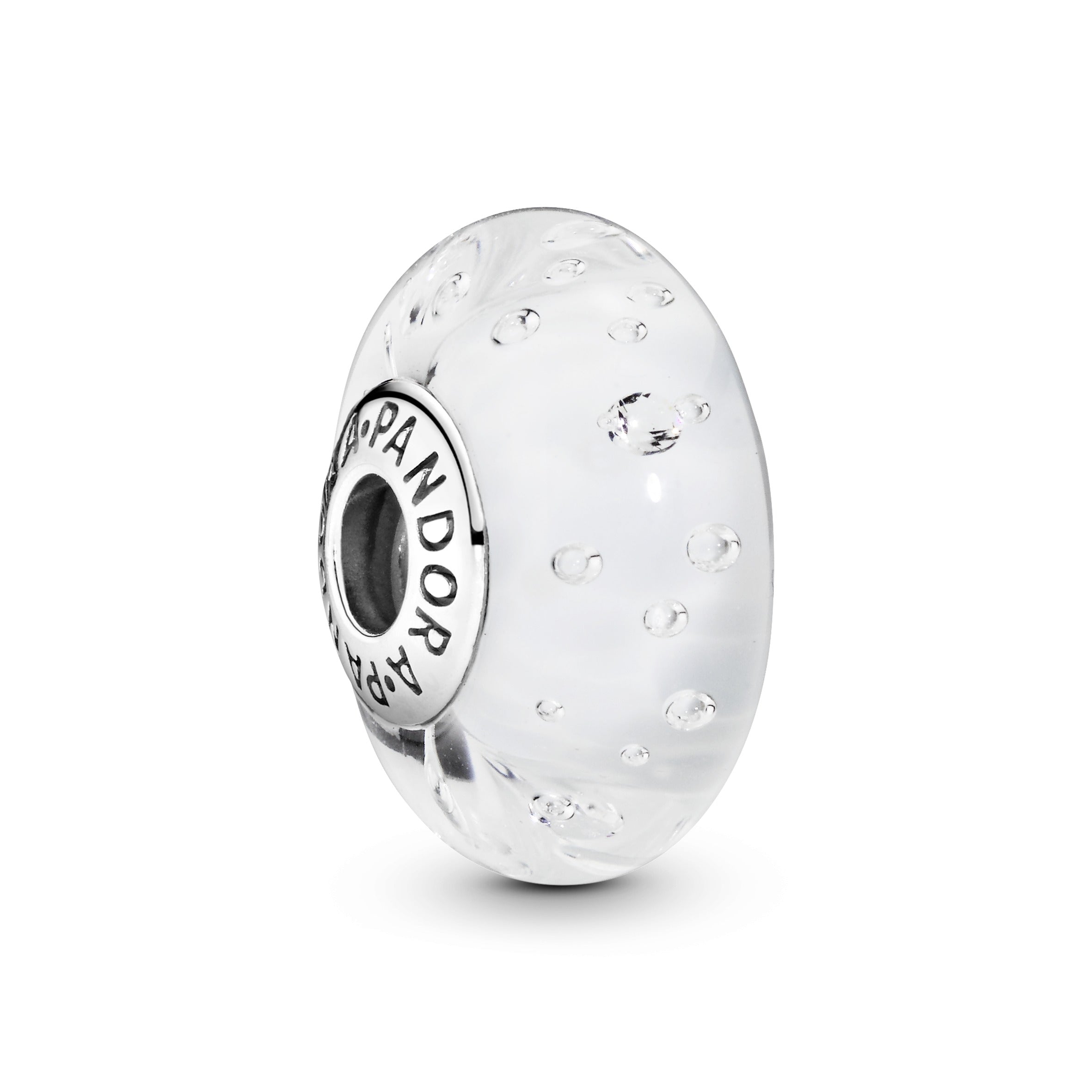 Let your creativity bubble with this sterling silver charm with a purist feel. Miniature cubic zirconia and air bubbles fizz inside the Murano glass. lending an effervescent feel to your styling. Each hand-finished piece is unique. just like you. It threads seamlessly on your bracelet to show your story.