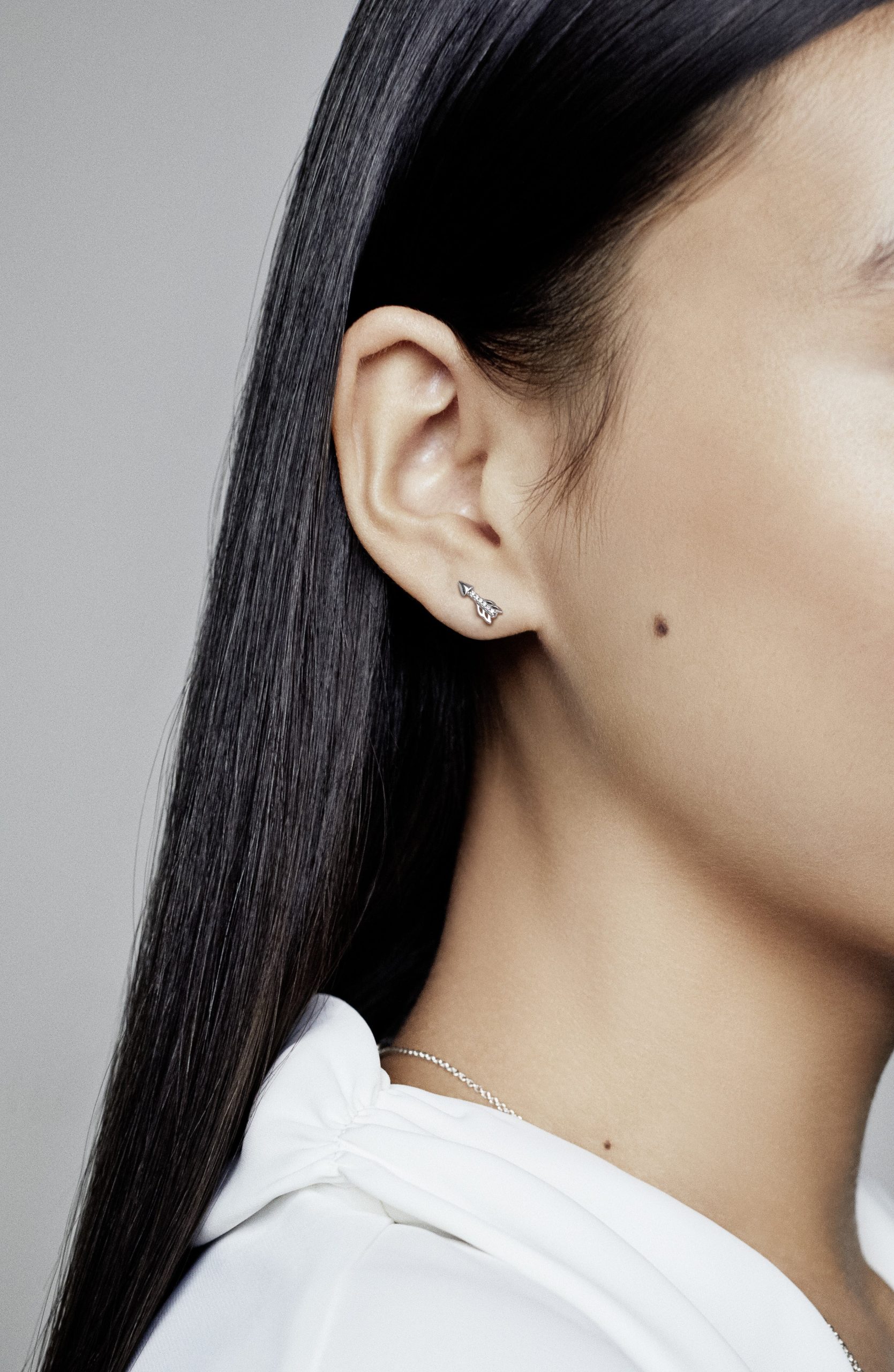 Point your look in the right direction with these sterling silver stud earrings. shaped as an arrow and detailed with bead-set clear cubic zirconia for subtle sparkle. Wear them alone or as part of a personal earring stack. adding them to one lobe or styling individually. The earrings also make for a great gift for the person in your life that loves to sparkle.