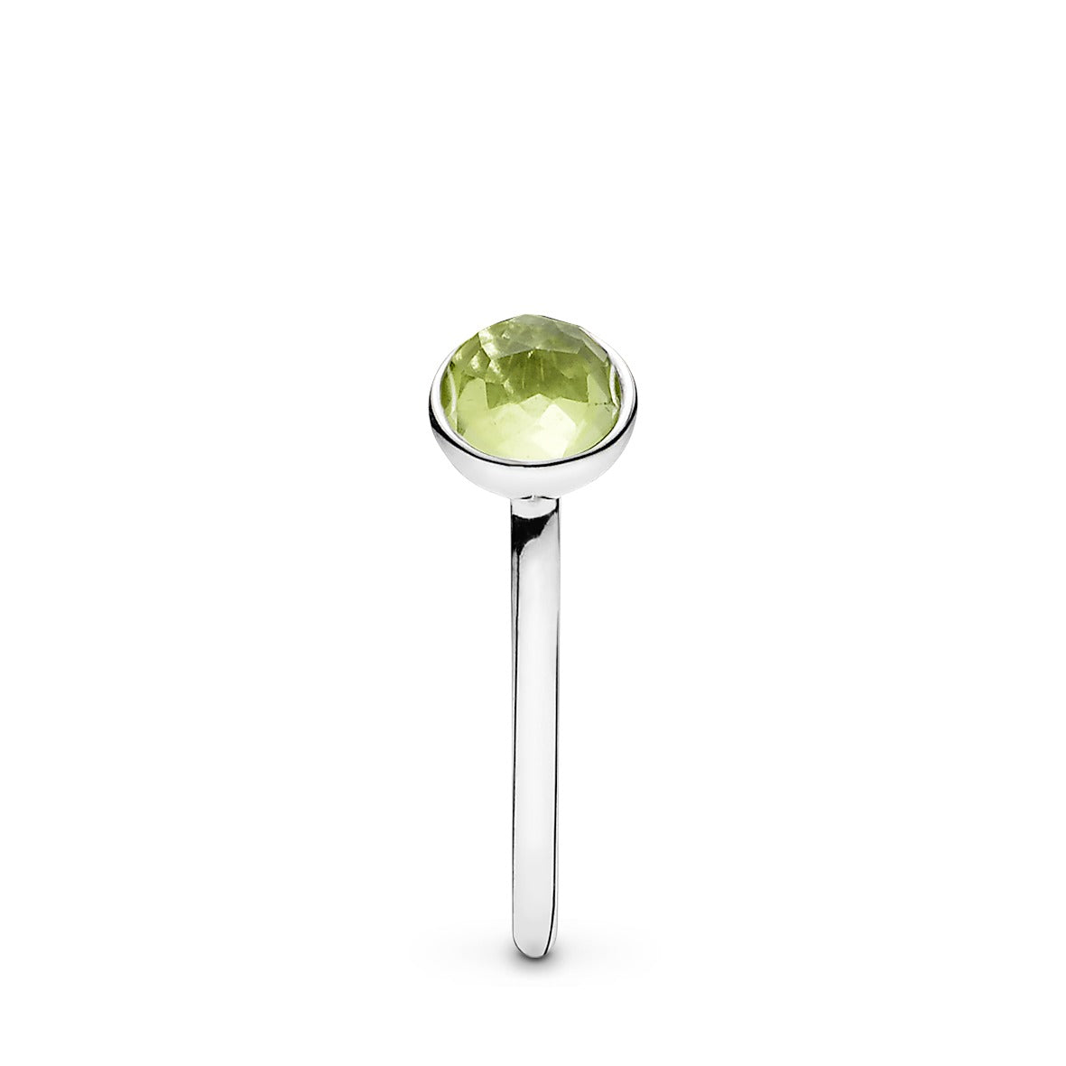 The August birthstone of peridot shines brightly on this stunning sterling silver birthstone ring in the Droplets series. The olive green gemstone is beautifully crafted with a spectacular dome flower cut and is said to have the ability to calm anger. attract friendship and bring good cheer.