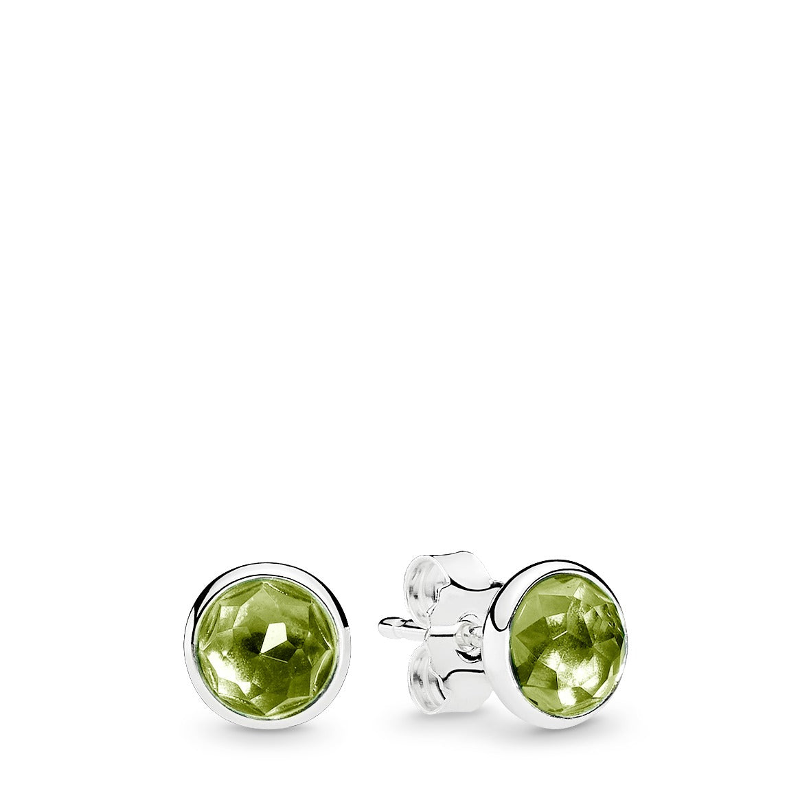 August birthstone stud earrings are adorned with peridots. These olive green gemstones feature the spectacular flower dome cut and are said to attract calmness. friendship and cheerfulness.
