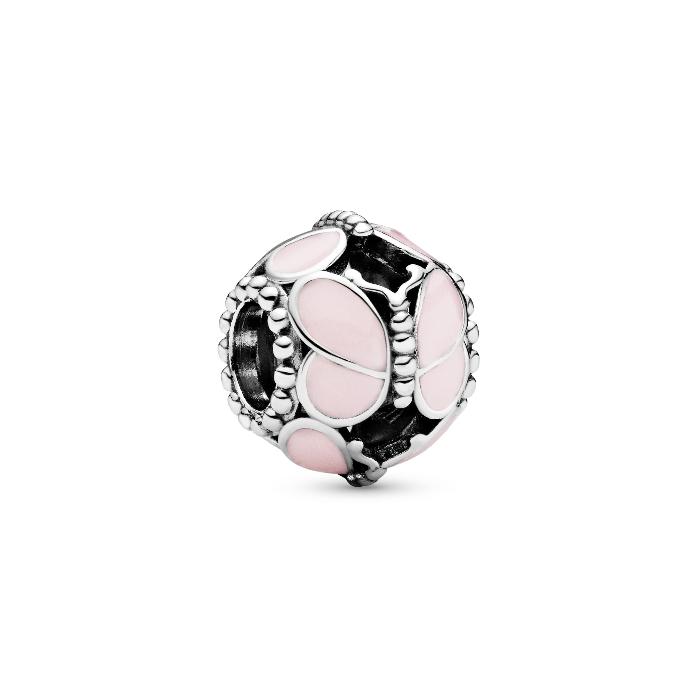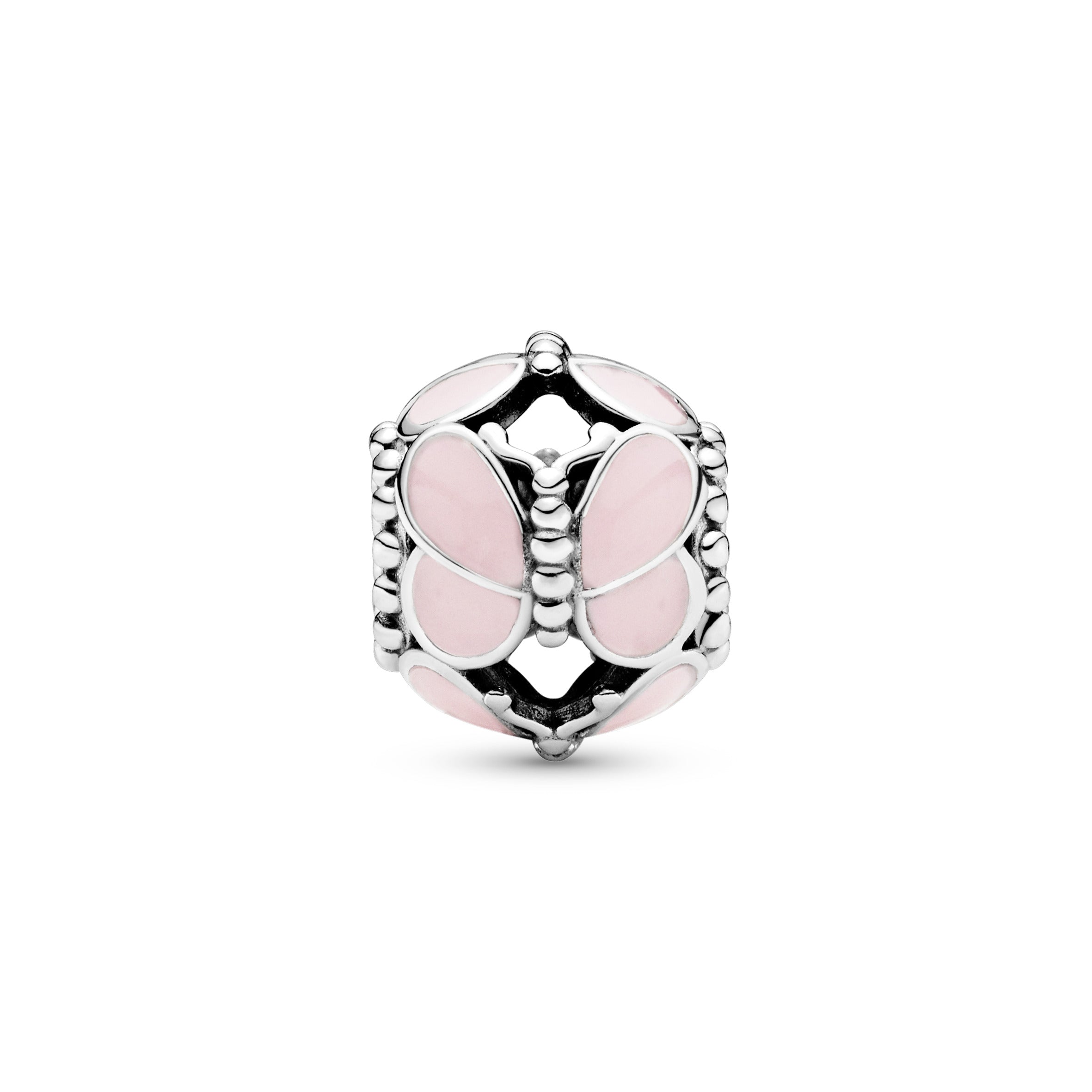 Celebrate the beauty and symbolism of the butterfly with this sterling silver charm. The charm is carefully detailed with pastel pink enamel. which has been applied by hand and milgrain beading. The openwork design lends an airy feel to design and adds an intricate edge. Wear it with your favourite charms or gift to the nature lover in your life.