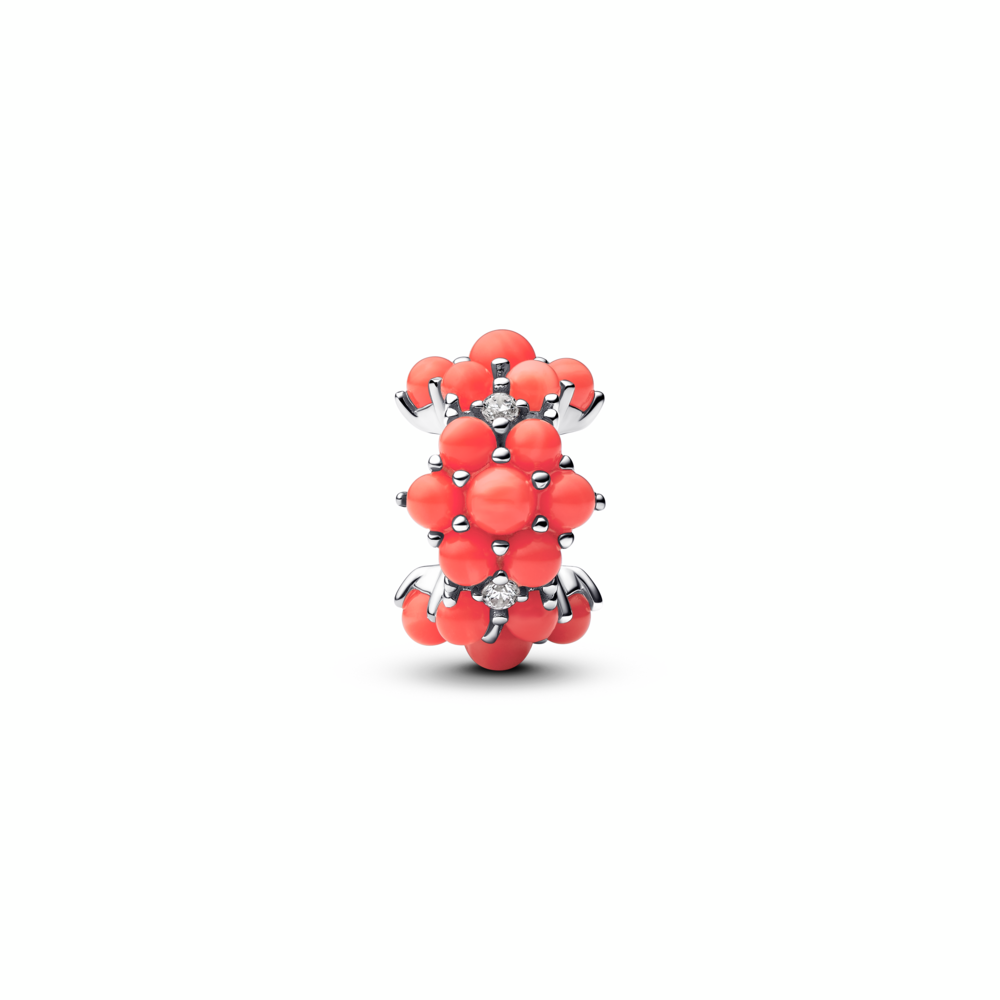 Sterling silver charm with clear cubic zirconia and imitation coral