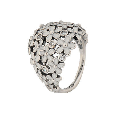 Daisy silver ring with cubic zirconia and white enamel