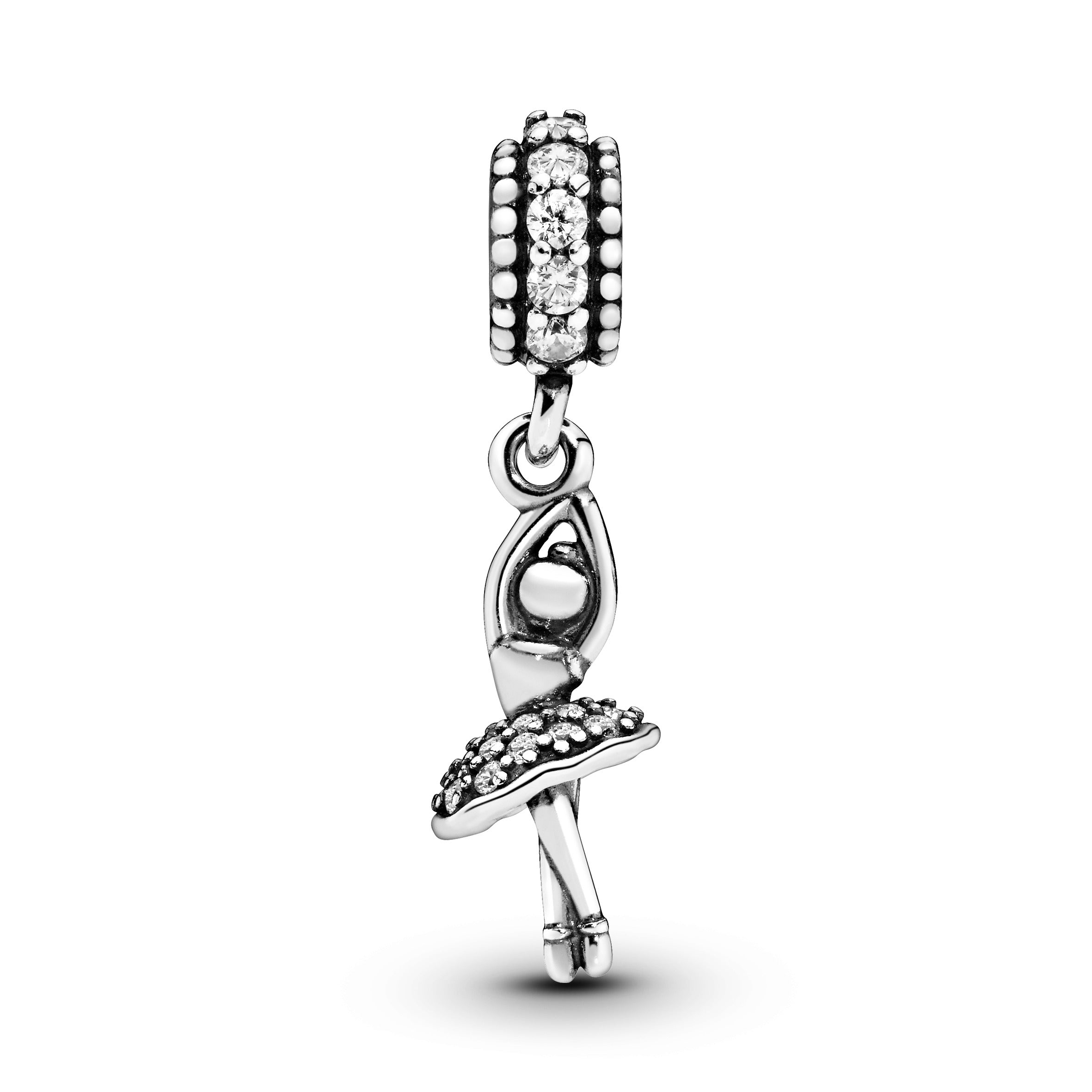 Let this pretty ballerina dance her way onto your bracelet. Designed to dangle gracefully from your Pandora Moments bracelet. this sterling silver charm is sculpted as a ballerina. It’s accented with scores of shimmering cubic zirconia that sparkle as they catch the light. It makes a wonderful gift for a dancing girl. or a meaningful addition to your own styling. representing something. somewhere or someone you love.