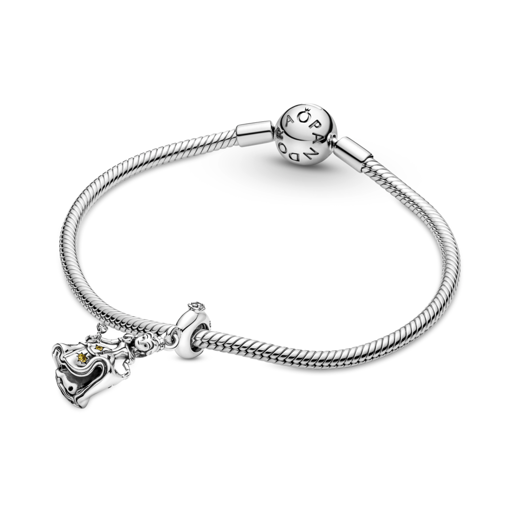 Tell a tale as old as time with this charm featuring a beloved scene from Disney’s Beauty and the Beast. The hand-finished sterling silver charm brings to life the ballroom dance where Disney’s Belle and the Beast share their first waltz. Brilliant-cut. man-made yellow stones decorate Belle’s dress and the bail includes a stone-set raised rose. Be inspired and transported back to the magical moment by this delicate and enchanting charm.