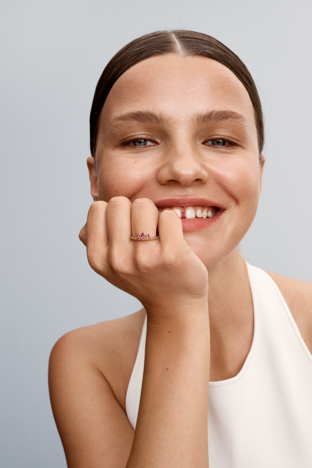 Disney Rapunzel 14k gold-plated tiara ring with phlox pink crystal and clear cubic zirconia