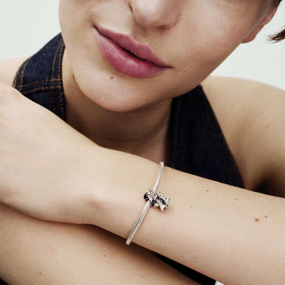 Disney Villains Cruella De Vil sterling silver charm with black. red and beige enamel