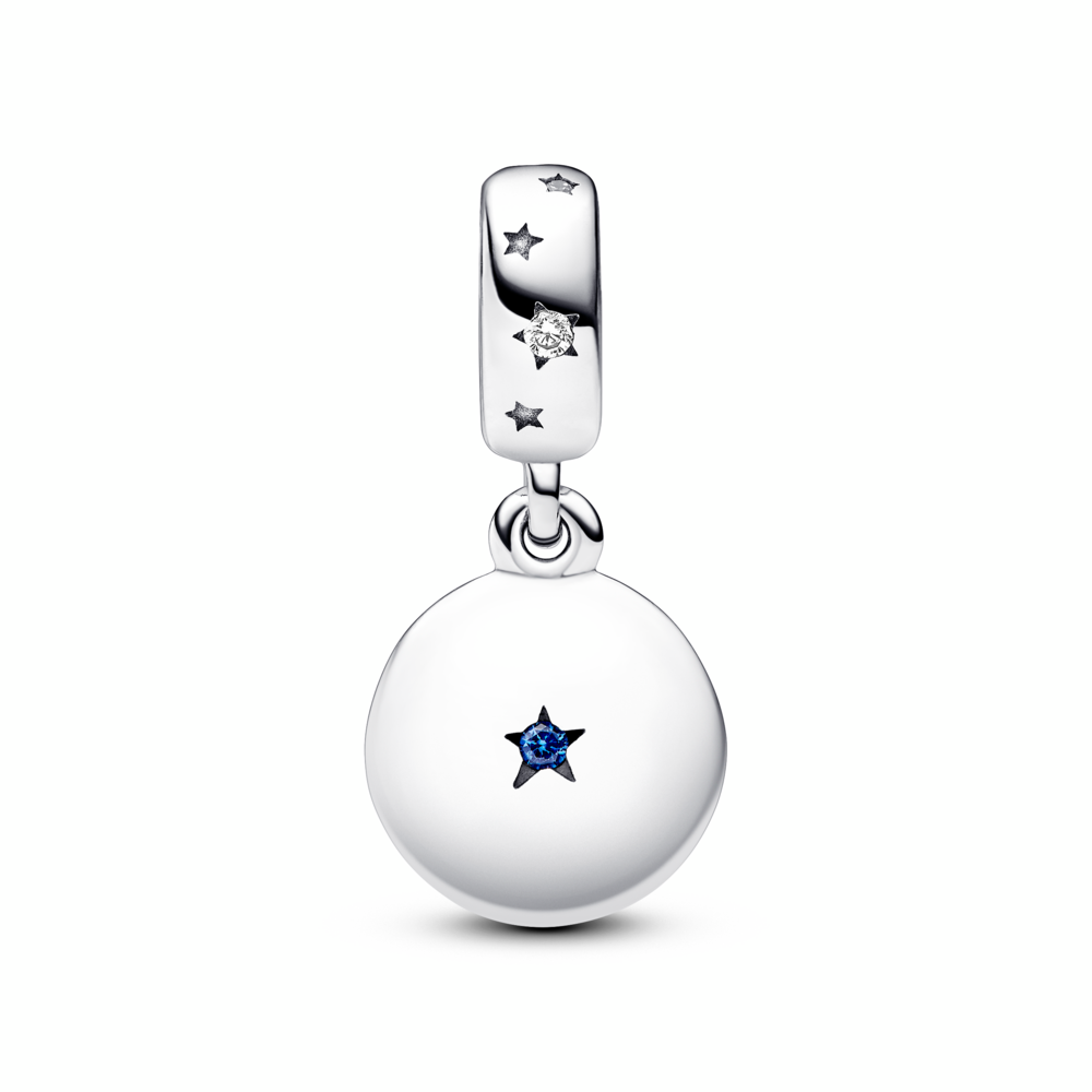 Family sterling silver double dangle with stellar blue crystal and clear cubic zirconia