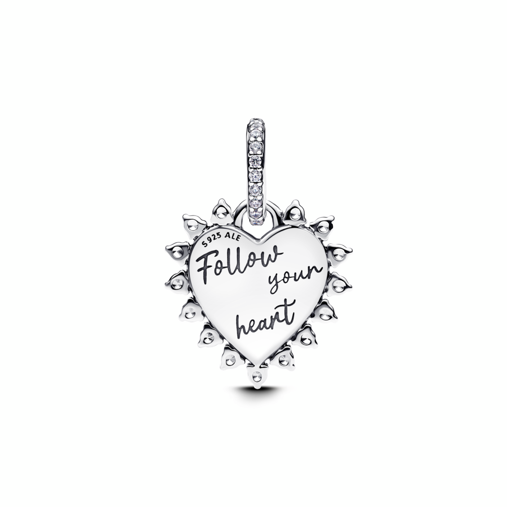 Spinnable arrow heart sterling silver dangle with red lab-created opal and clear cubic zirconia