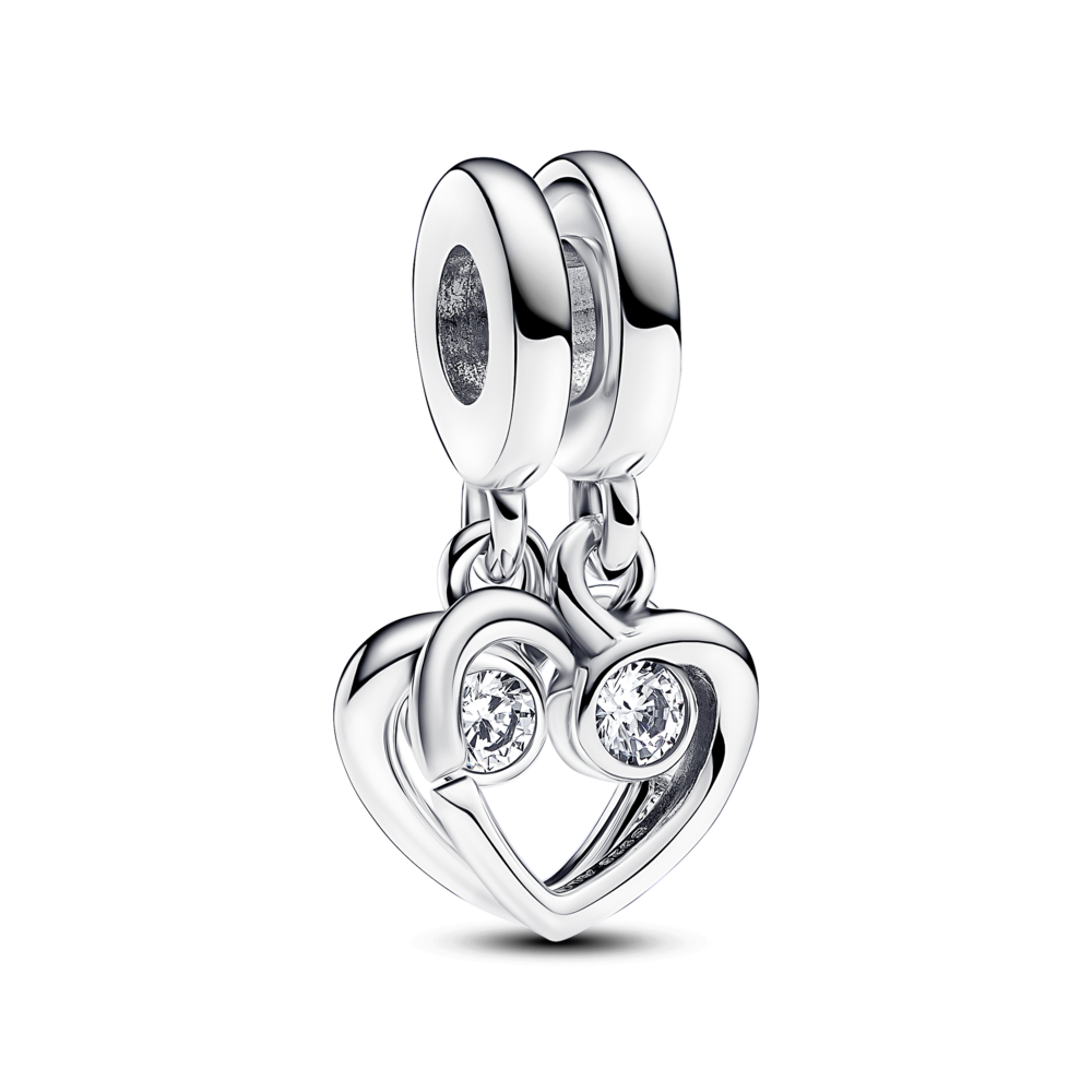 Hearts sterling silver splittable dangle with clear cubic zirconia