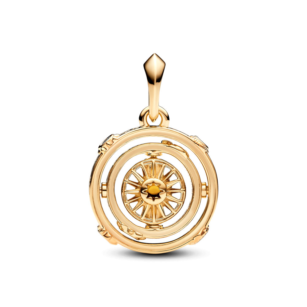 Project House spinning Astrolabe 14k gold-plated dangle with honey coloured crystal and clear cubic zirconia