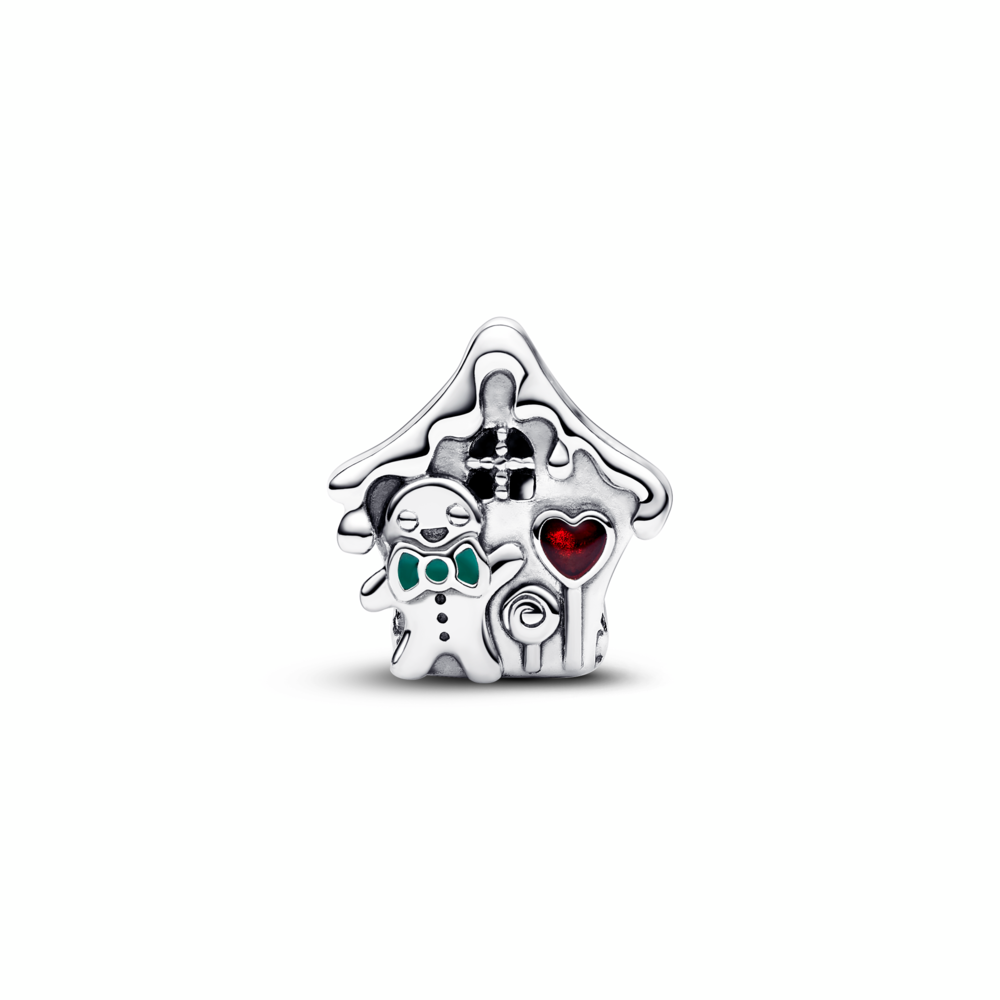 Gingerbread house sterling silver charm with pink. red and green enamel