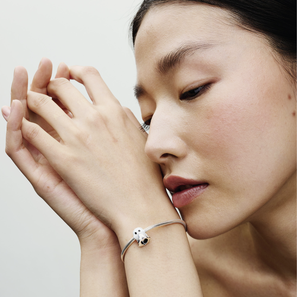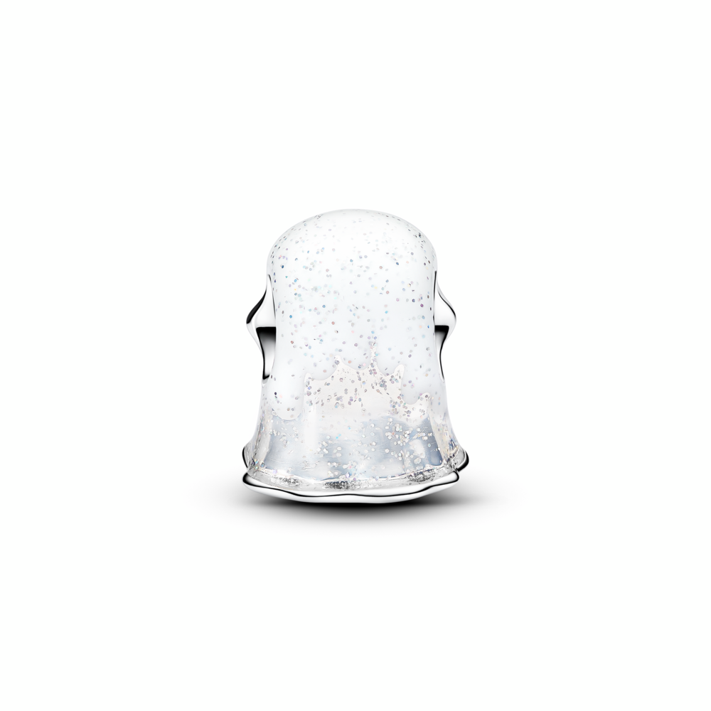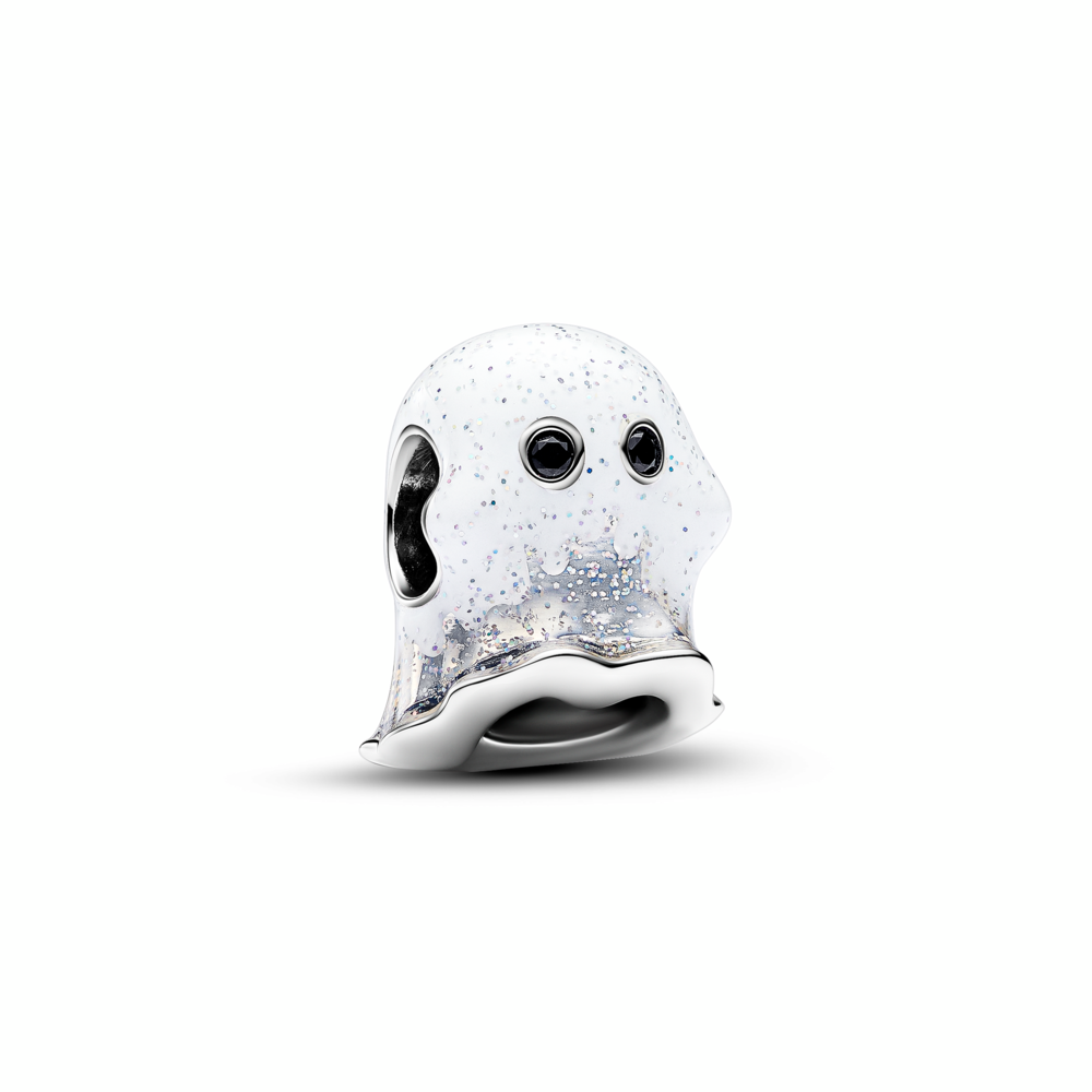 Ghost sterling silver charm with black crystal and shimmering white glow in the dark enamel