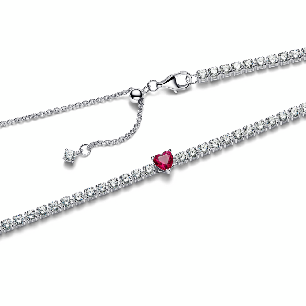 Heart sterling silver choker necklace with cherries jubilee red crystal and clear cubic zirconia