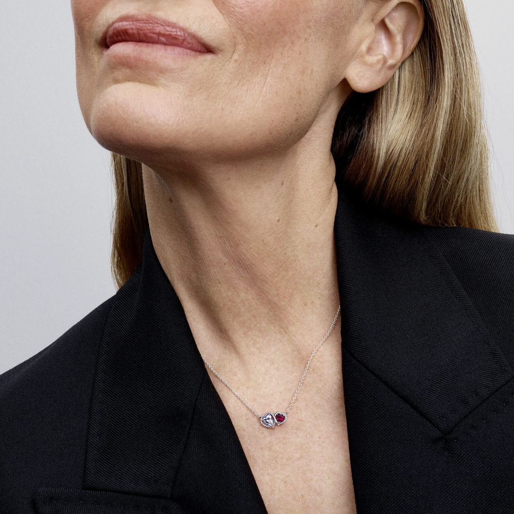Hearts sterling silver collier with cherries jubilee red crystal and clear cubic zirconia