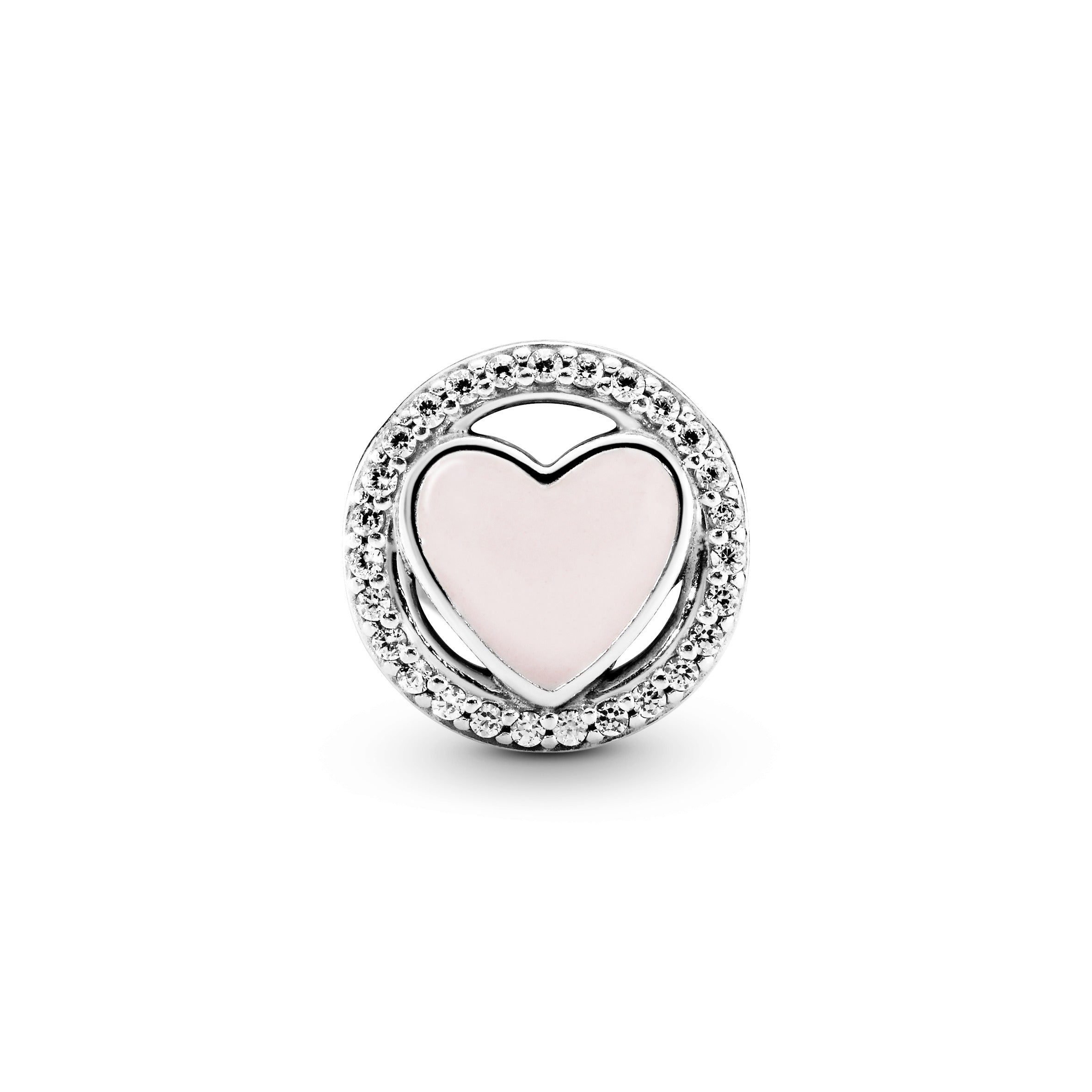 Wear your heart on your sleeve with this pink charm. Centred with a glossy hand-applied enamel heart. the round sterling silver charm is accented with sparkling cubic zirconia. It’s made for Pandora Moments charms – and for you to wear to show your story. It also makes a wonderful gift for a Pandora fan.