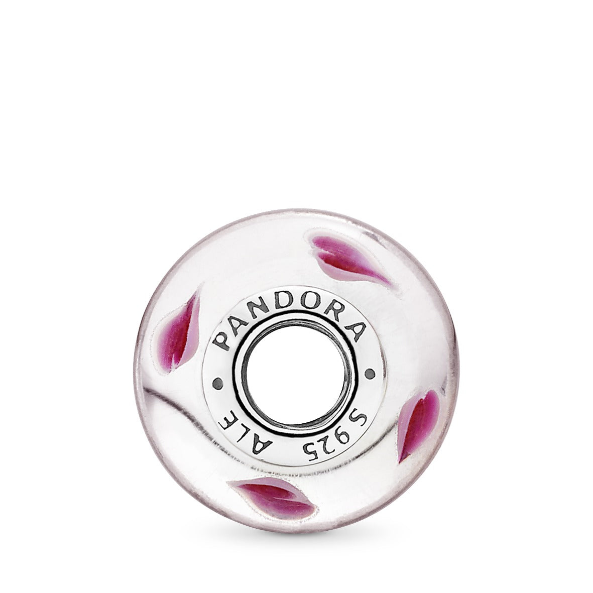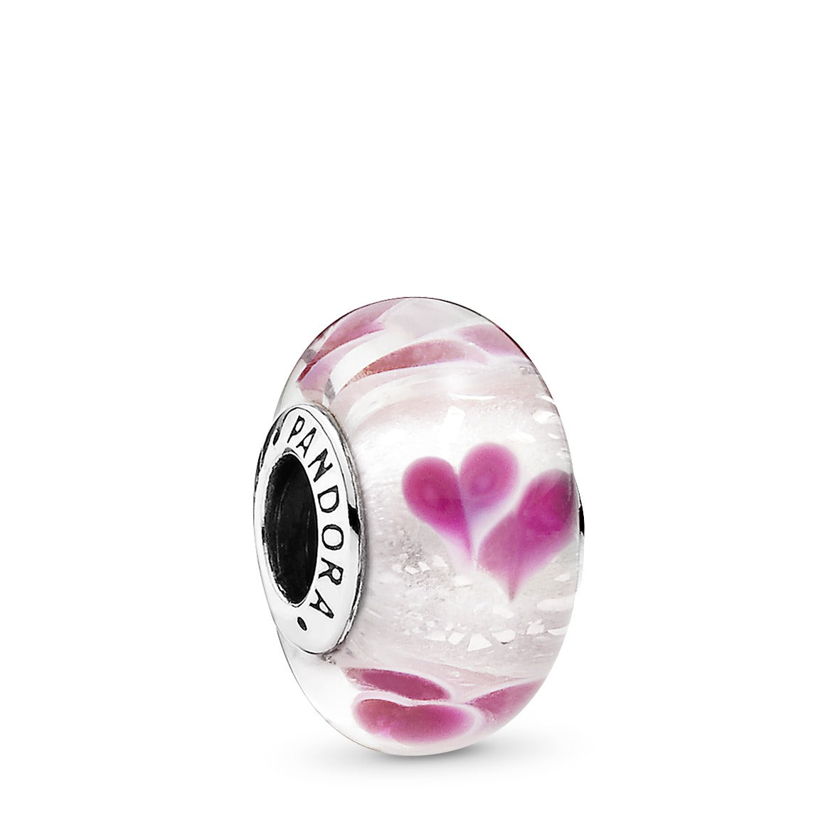 Create a unique and romantic look with this hand-finished glass charm by PANDORA. Floating pink hearts are captured within colourful glass. creating a sparkling rainbow effect that showcases the beauty of love.