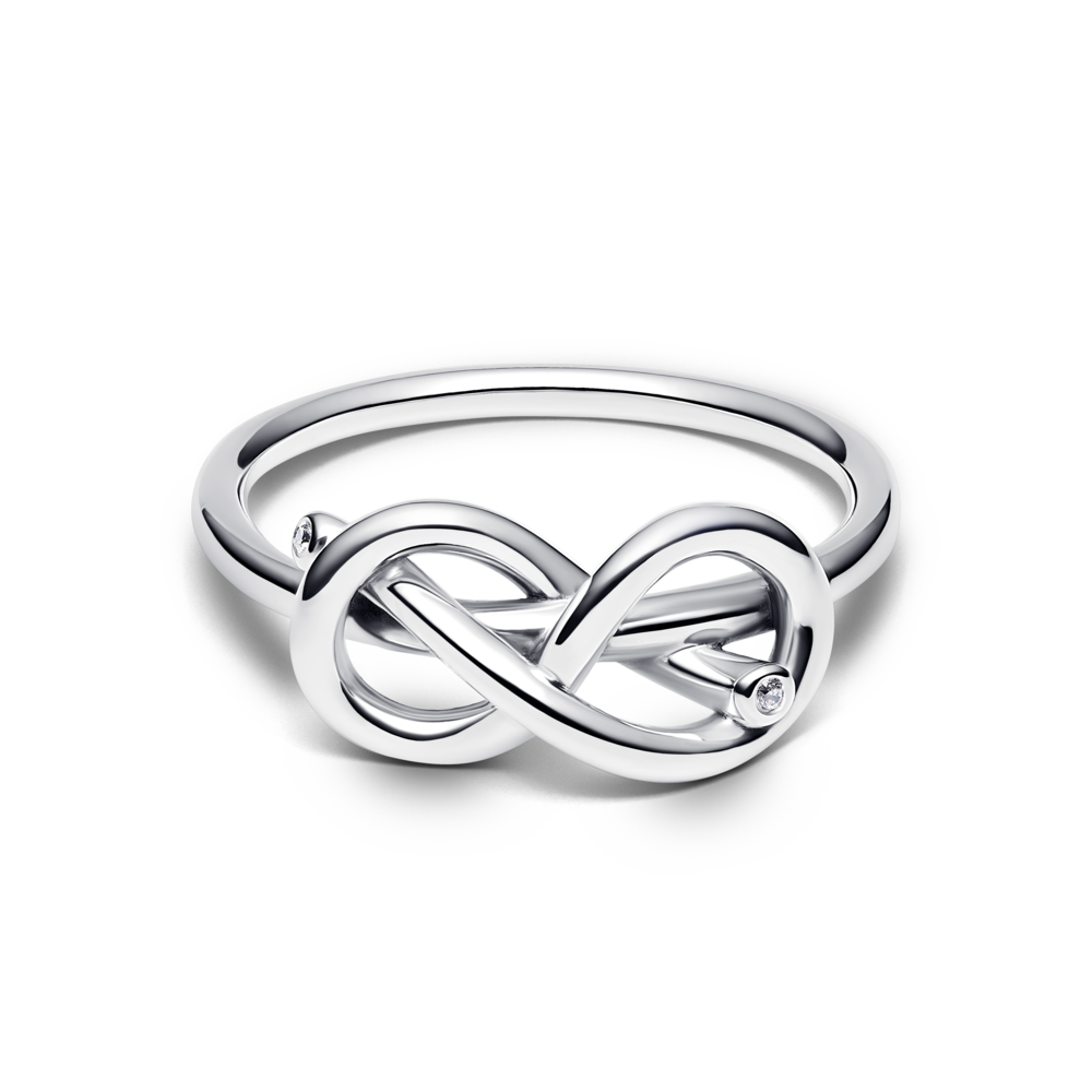 Infinity knot sterling silver ring with clear cubic zirconia