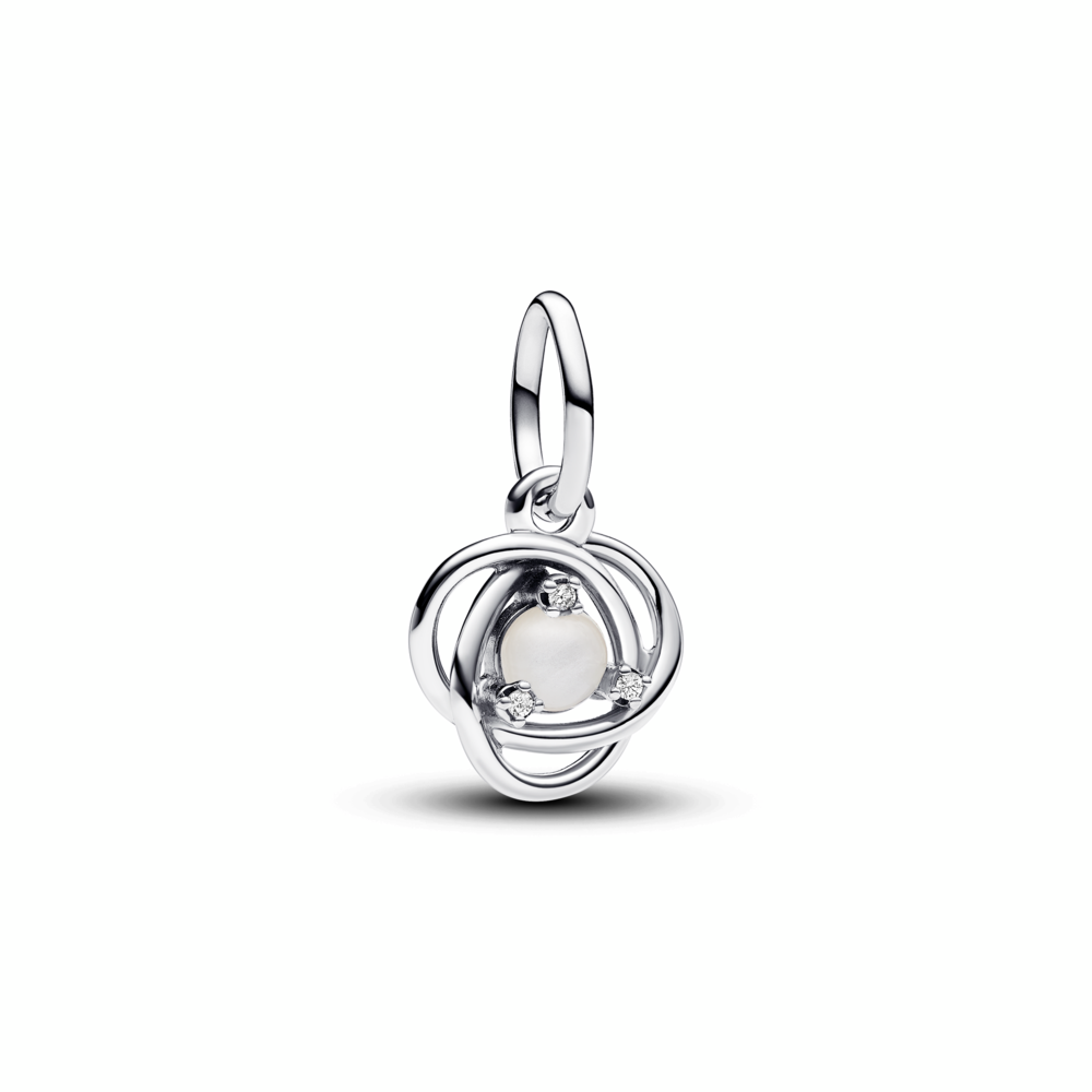 Sterling silver dangle with white bioresin man-made mother of pearl and clear cubic zirconia