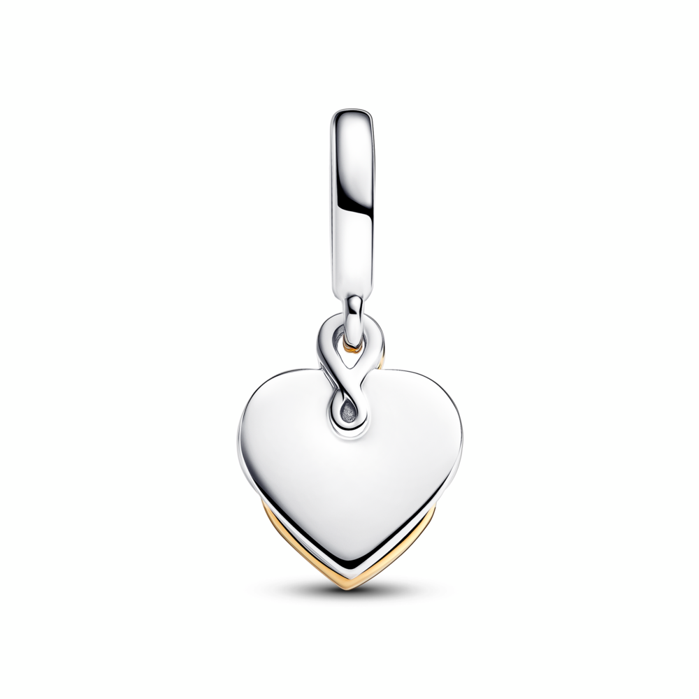 Engravable heart sterling silver and 14k gold-plated double dangle with 0.009 ct TW GHI VS2+good-very good lab-grown diamond