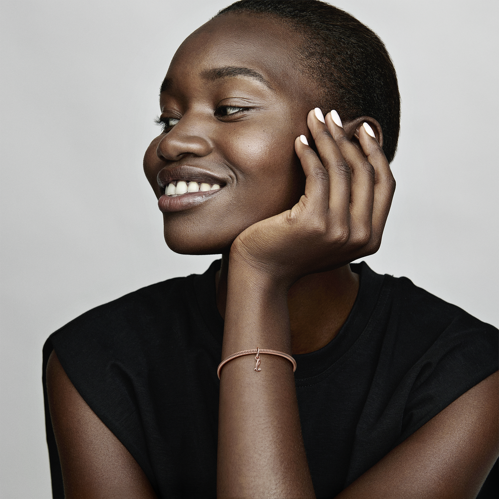 Special features: Three-dimensional bend wire shaped like an l; Pandora logo engraved on back; stone set in front of the letter; oval-shaped closed bail.聽