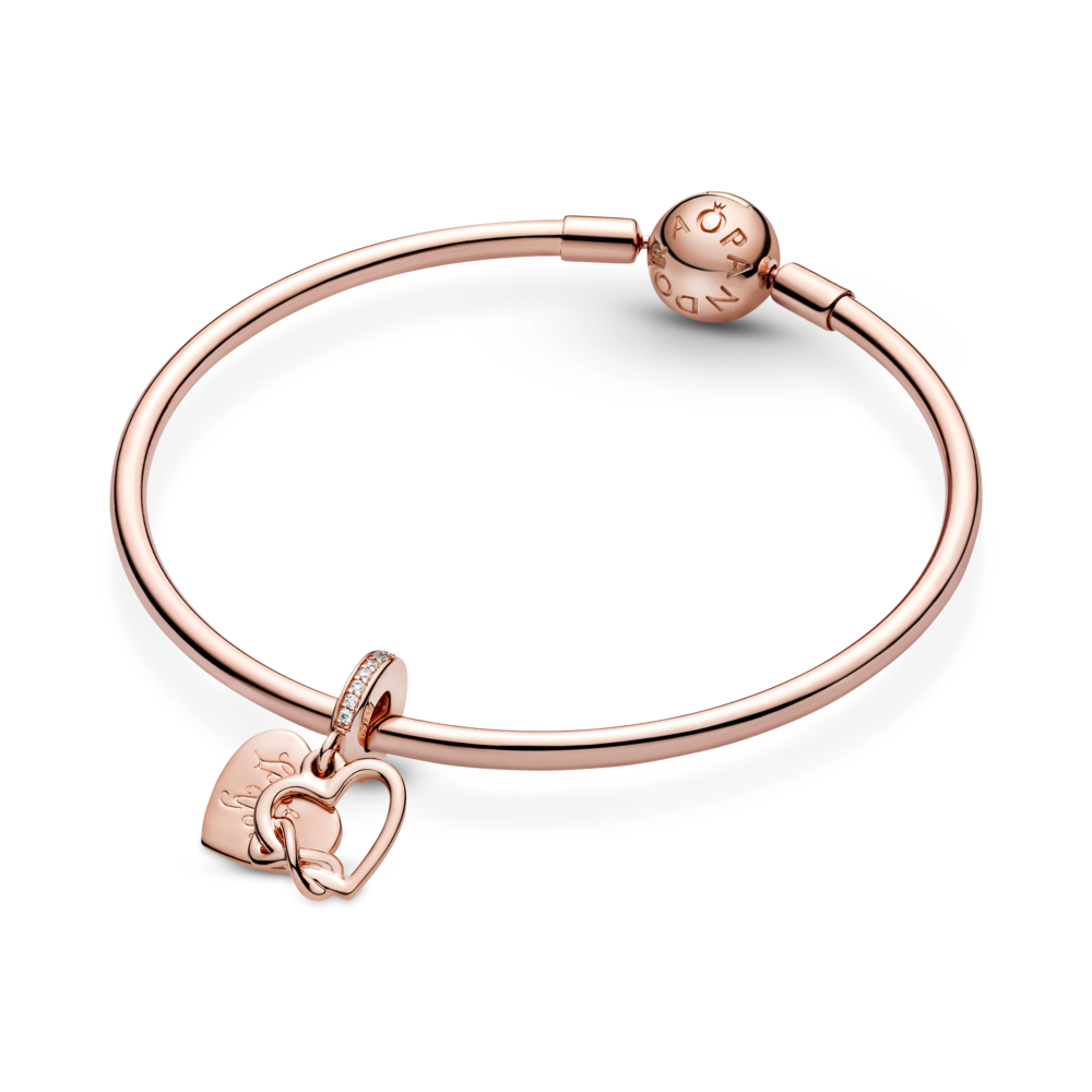 Surprise someone special with the Love You Infinity Heart Dangle Charm. Hand-finished in Pandora Rose (14k rose gold-plated unique metal blend). the front dangle features a heart-shaped outline with an infinity symbol wrapped around the left-hand side. The heart-shaped back disc includes the engraving Love you on the front and Always have. always will on the back. A row of sparkling stones decorates the bail. Gift this piece to your loved one to show how much you care.