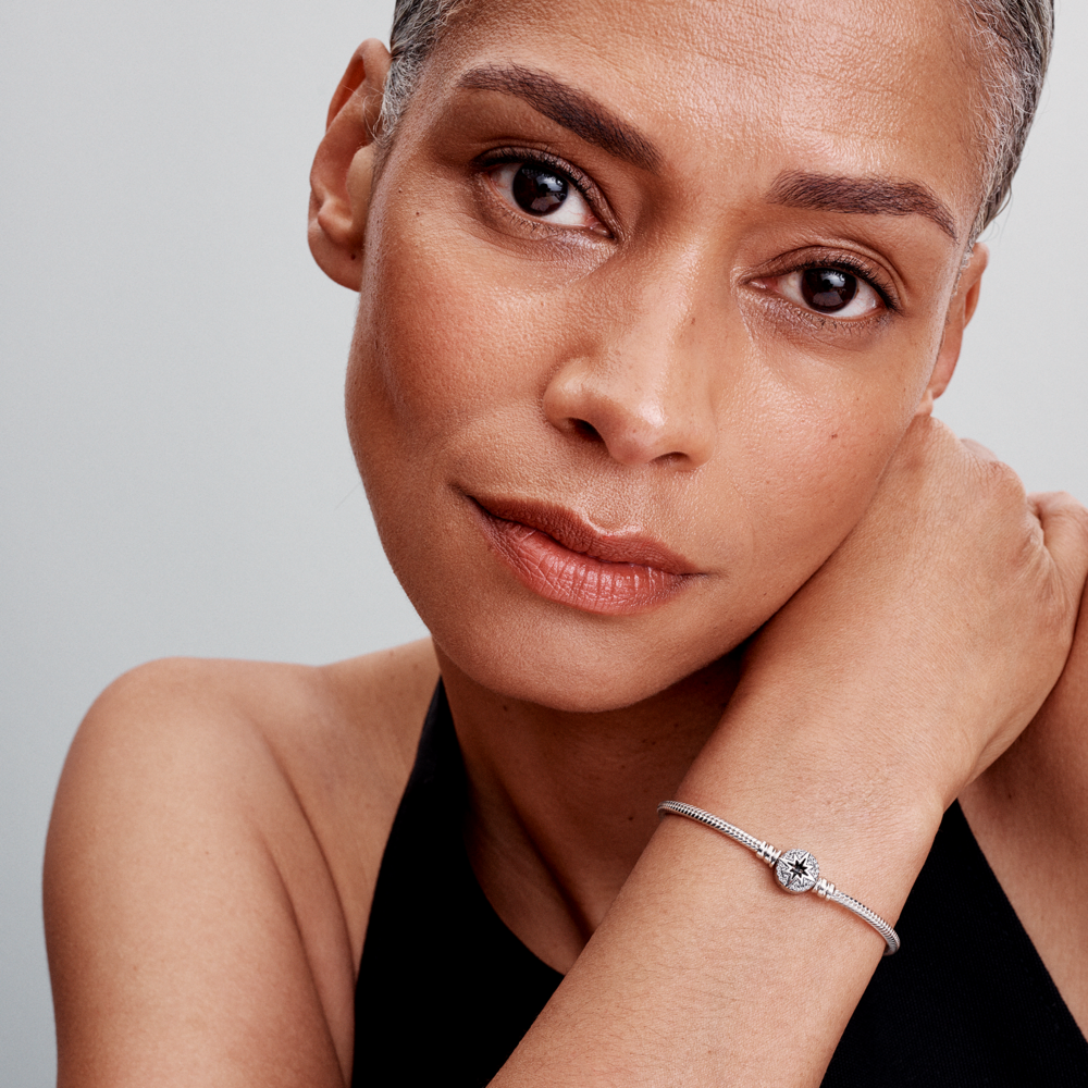 Snake chain sterling silver bracelet with north star clasp and clear cubic zirconia