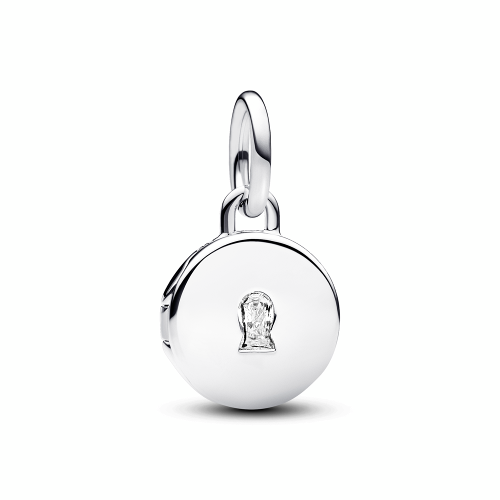 Key hole engravable locket sterling silver dangle with clear cubic zirconia