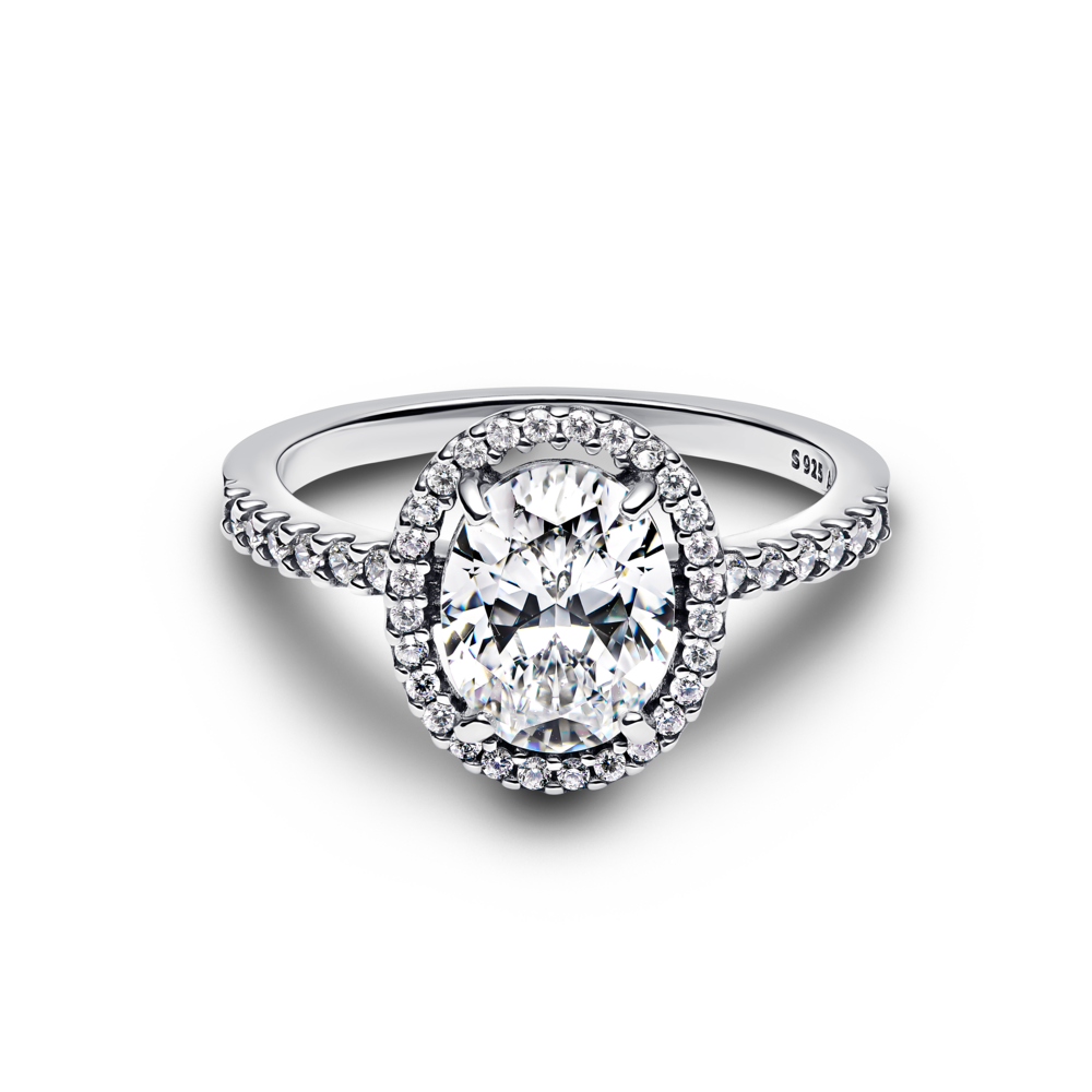 Oval Sparkling Halo Statement Ring