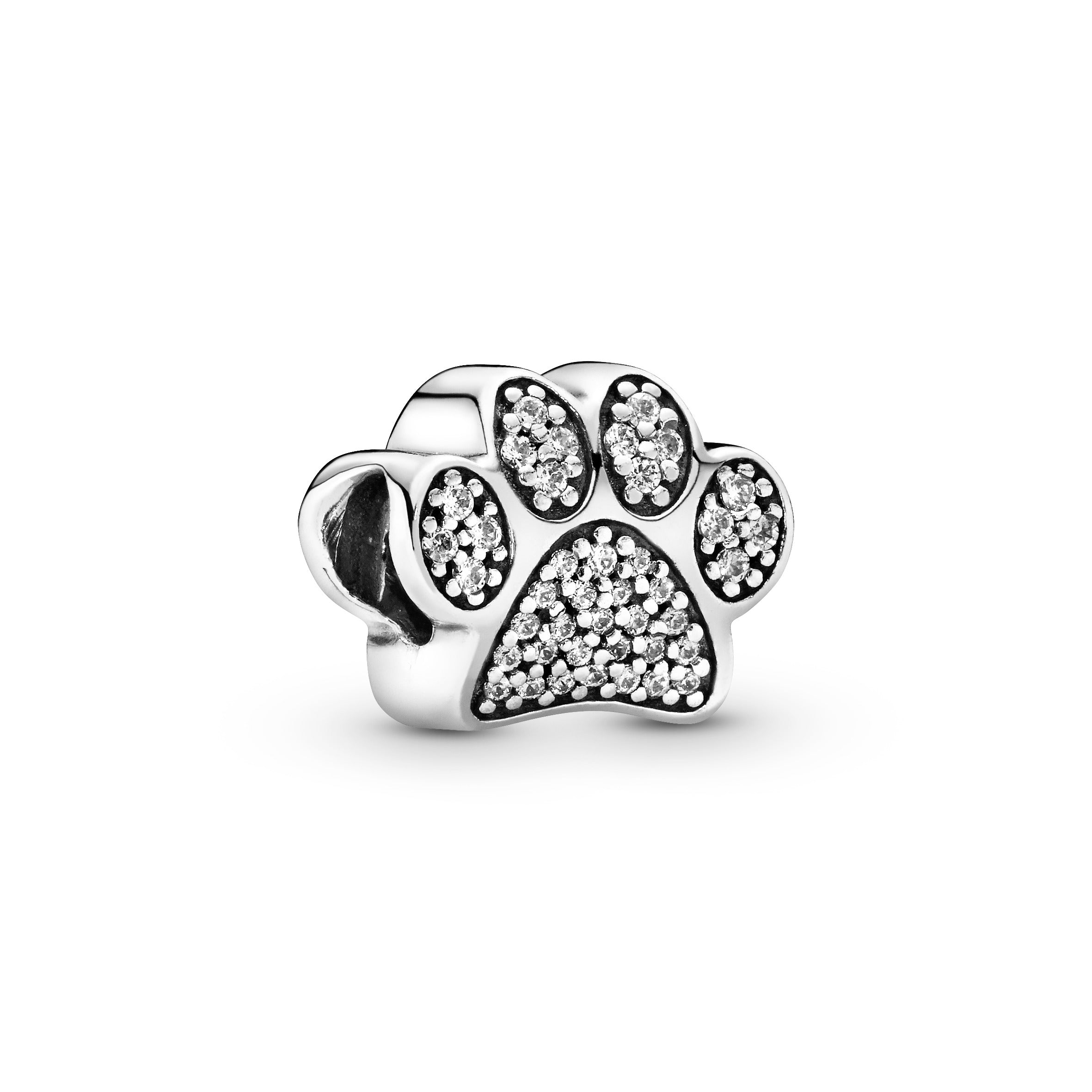 Celebrate your favourite four-legged friend with this Pandora paw print charm. Finely crafted in sterling silver. this adorable charm is embellished with sparkling cubic zirconia stones. A delightful gift for any cat or dog lover. it will add whimsical charm to your Pandora jewellery collection.