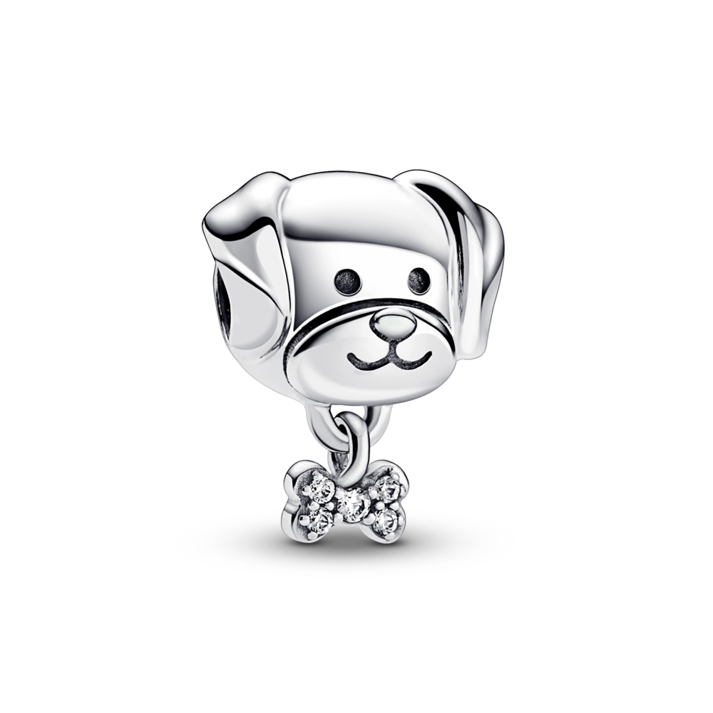 Let your love for your four-legged bestie shine with the Pet Dog & Bone Charm. Crafted from sterling silver. this retro piece with a modern touch is decorated with engraved lines on the face and sparkling pav茅 on the bone dangle. Wear it on a bracelet or charm holder to show your pooch’s special place in your heart.