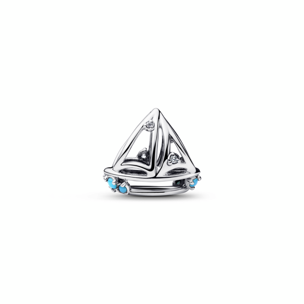 Sailboat sterling silver charm with clear cubic zirconia and capri blue crystal