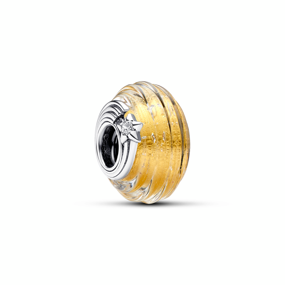 Shooting star sterling silver charm with clear cubic zirconia. transparent Murano glass and gold foil