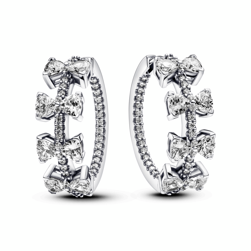Bow sterling silver hoop earrings with clear cubic zirconia