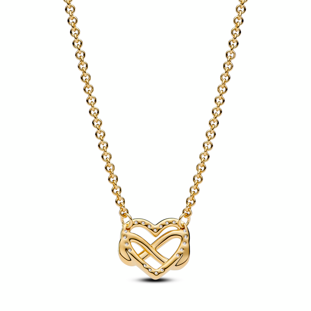 Infinity heart 14k gold-plated necklace with clear cubic zirconia