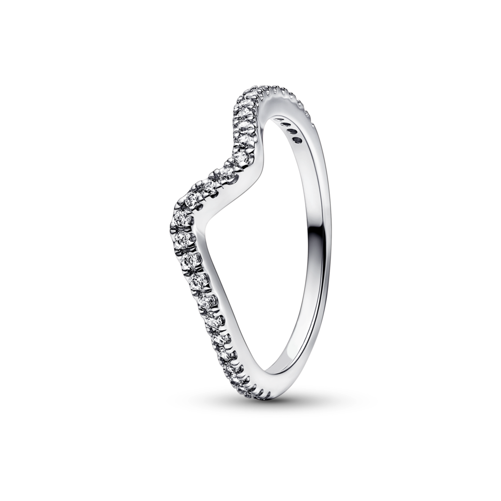 Special features: ring band with a wavy shape at the top; row of pavé along the wave; 1/3 of the ring band is polished on all sides; functional holes for stone setting on the back of the row of pavé.