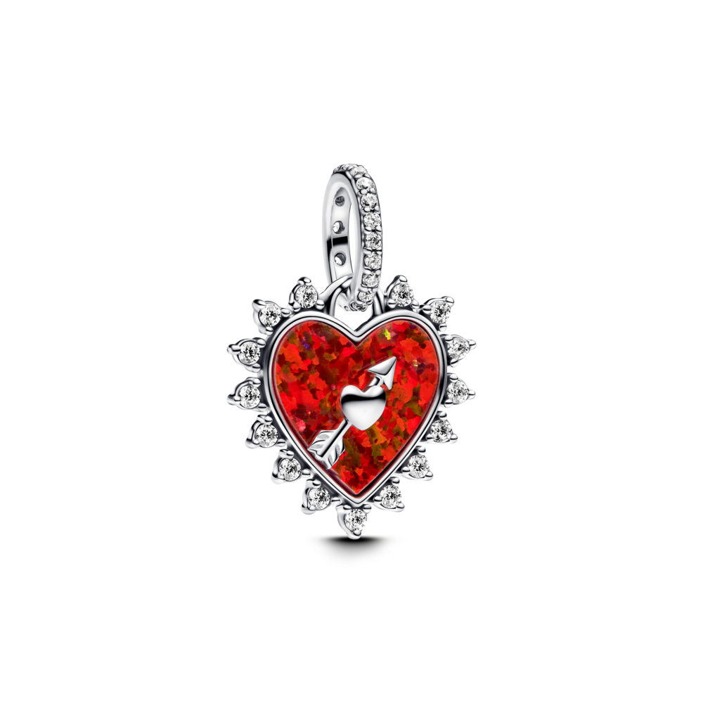 Spinnable arrow heart sterling silver dangle with red lab-created opal and clear cubic zirconia
