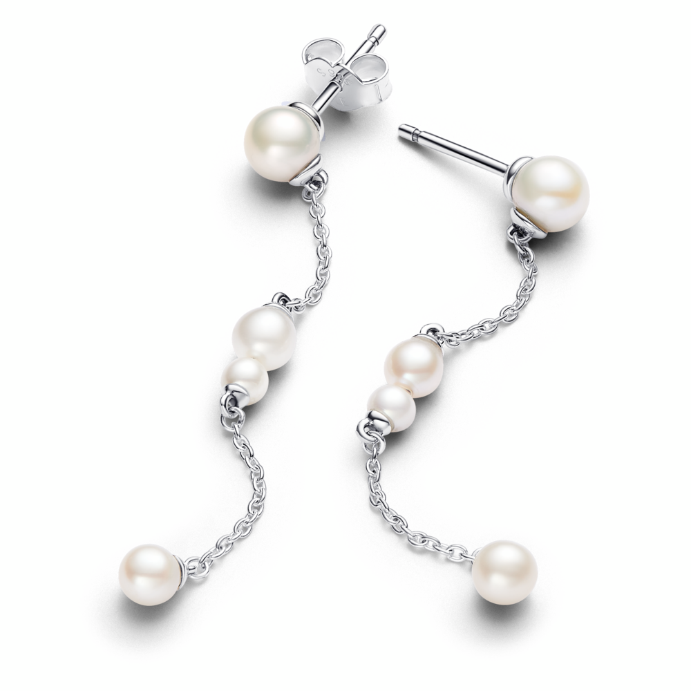 Sterling silver drop earrings with white treated freshwater cultured pearl