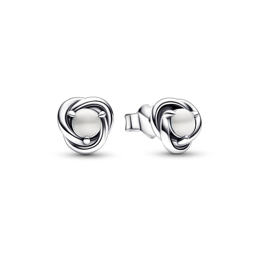 Stone: 2 prong-set round cabochon-cut white bioresin man-made mother of pearl